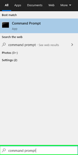 1. Click the Windows search box and type in Command Prompt.